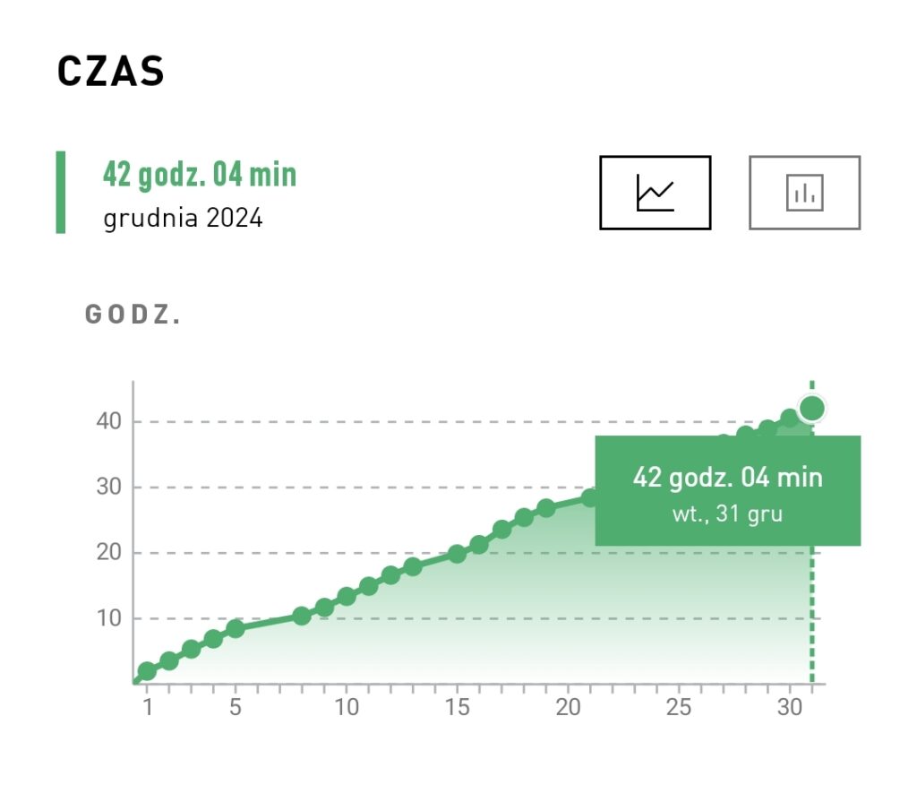 Czas poświęcony na trening w ciągu miesiąca – ponad 42 godziny