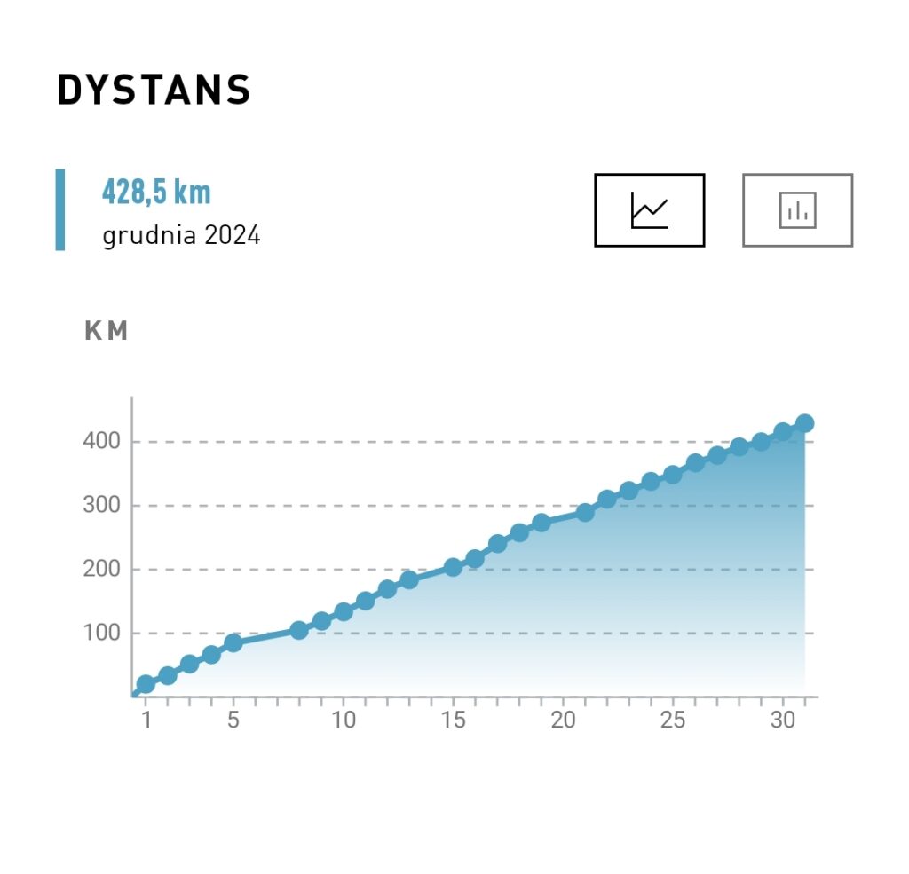 W grudniu wyszło około 430 km. Jest to absolutny rekord w moim wykonaniu. Dojście do takiego wyniku zajęło mi to sporo czasu, sporo wyrzeczeń.