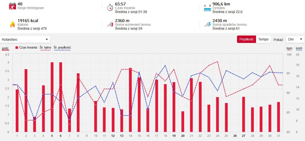 Czas poświęcony na trening w ciągu miesiąca – ponad 25 godzin