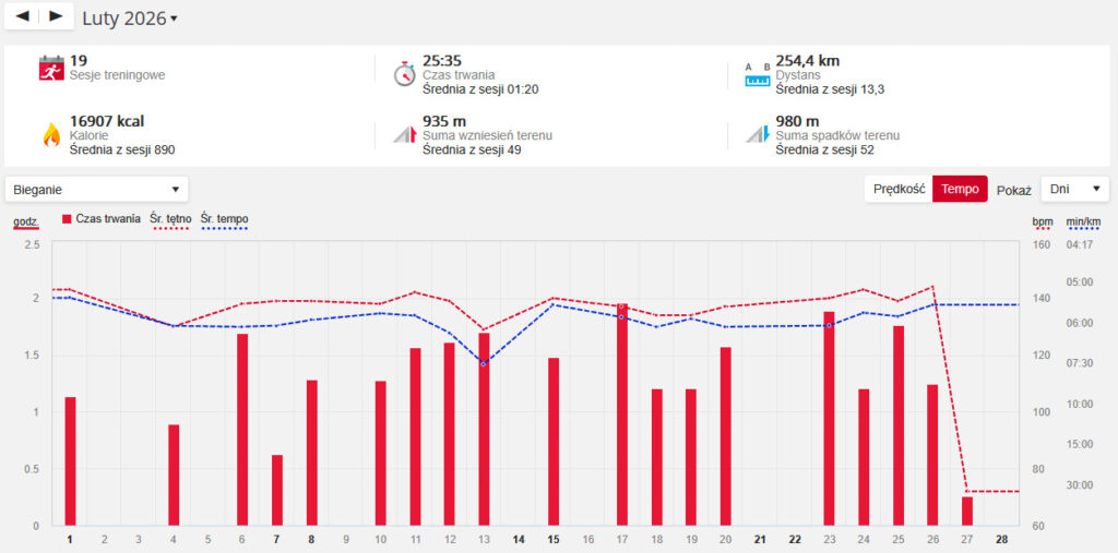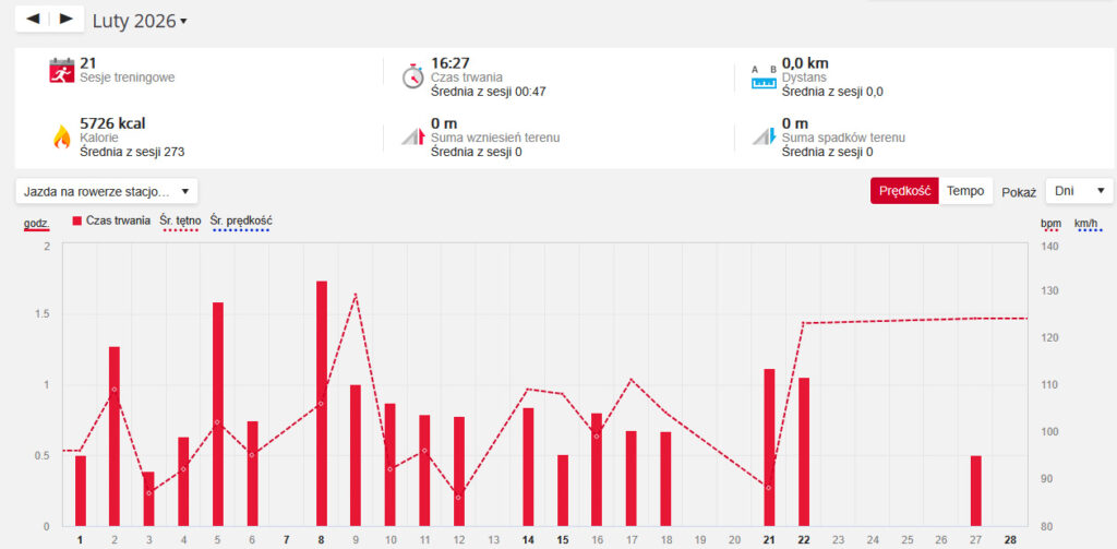 Czas poświęcony na trening w ciągu miesiąca – ponad 25 godzin