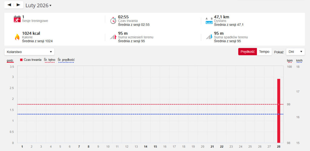 Dodatkowo w lutym zacząłem sezon rowerowy – liczby kilometrów ROWEROWO wyszło 47 km