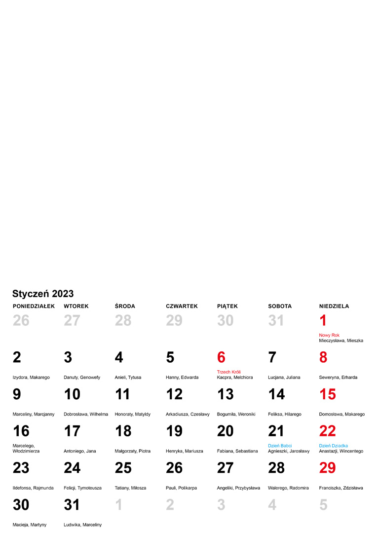 Kalendarz do druku styczeń 2023