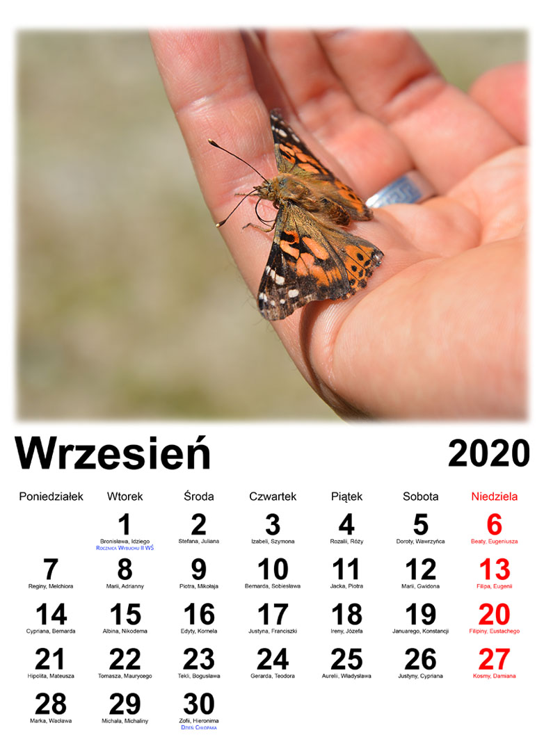 Kalendarz do druku wrzesień 2020 z moim zdjęciem