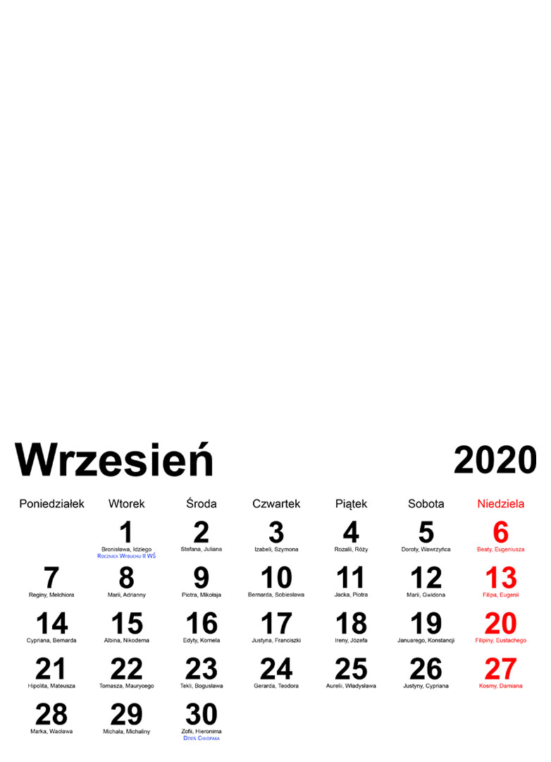 Kalendarz do druku wrzesień 2020 z miejscem na Wasze zdjęcie